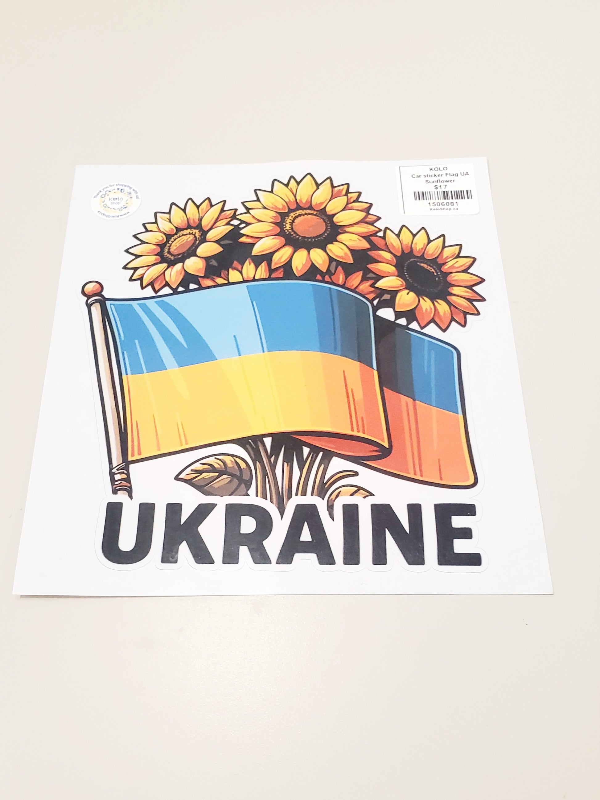 Show your support with the Car sticker Flag UA Sunflower, featuring a vibrant sunflower design combined with the Ukrainian flag. This durable decal is easy to apply and weather-resistant, making it ideal for outdoor use on vehicles. Its bold colors maintain visibility and add a personalized touch while symbolizing solidarity and hope. Perfect for anyone who wants a meaningful and lasting display of pride on their car.