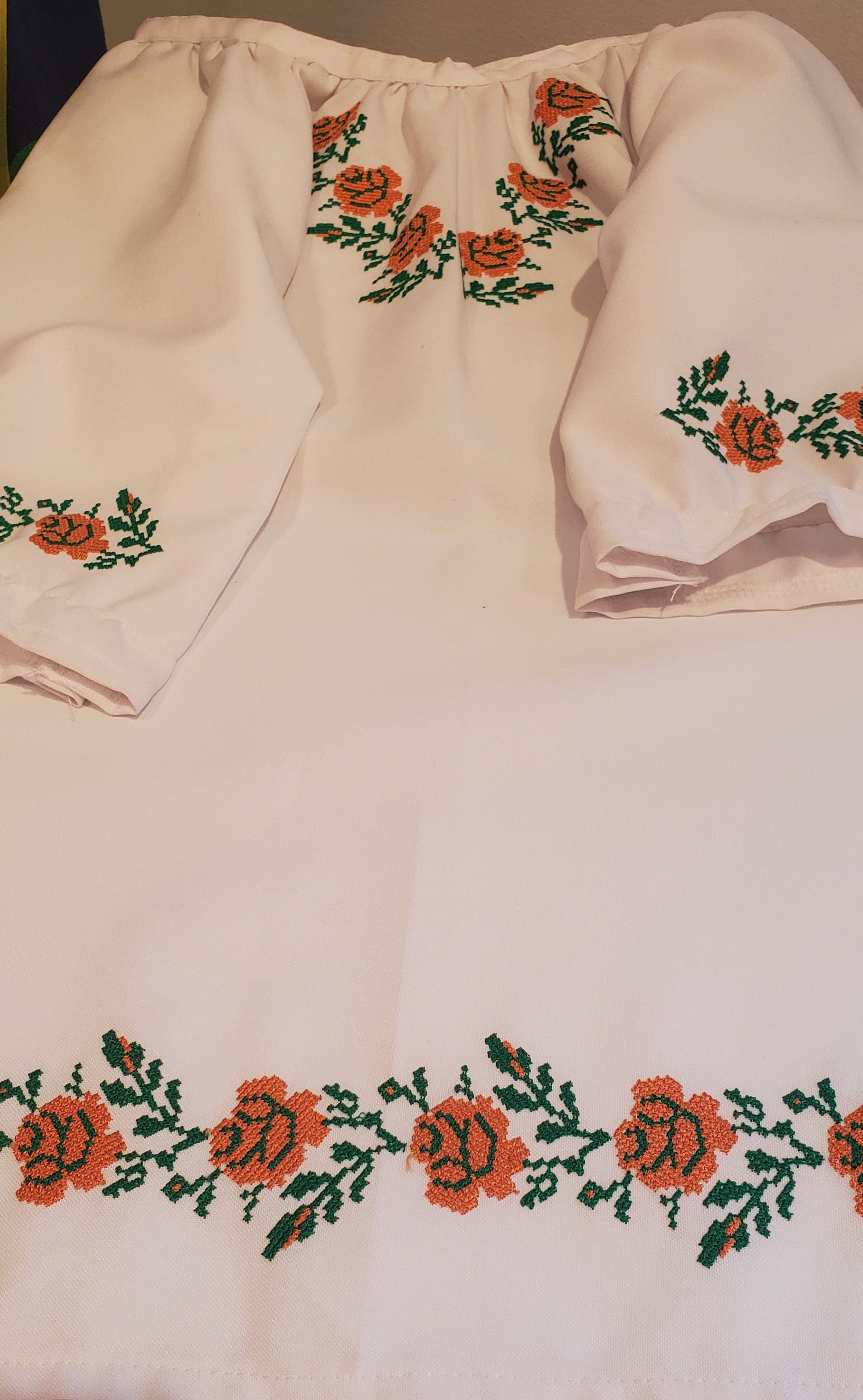 Embroidered girl's blouse orange/green